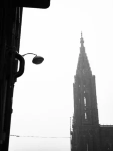 J’ai réalisé une série photo nommée Stras[bouts]. Et, j’ai voulu saisir des détails de lieux emblématiques de Strasbourg sous un angle moderne. Ainsi, le but était de retranscrire de façon graphique ces lieux qui pour certains sont très anciens.